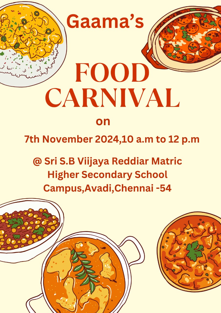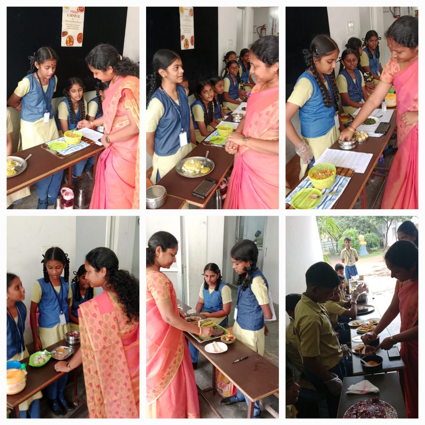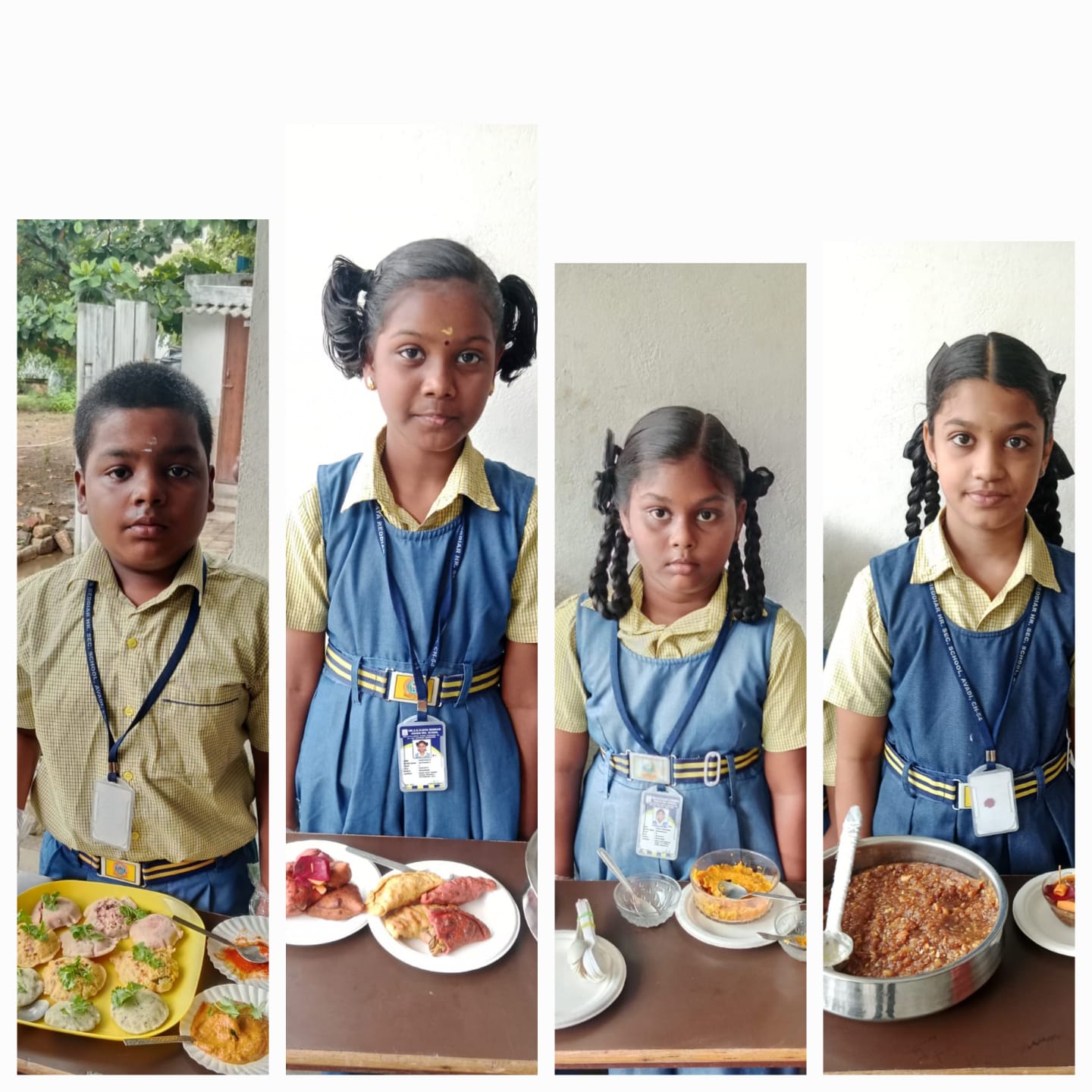 A food carnival conducted at Sri S.B.Vijaya Reddiar Matric Higher Secondary School, Avadi, Chennai - 54. The event was brought up to create awareness of healthy eating habits. The aroma of traditional food was palpable as home-cooked, healthy and organic dishes were prepared and served. It was an attempt to raise awareness among students about the benefits of millets, organic food and avoid junk food.
